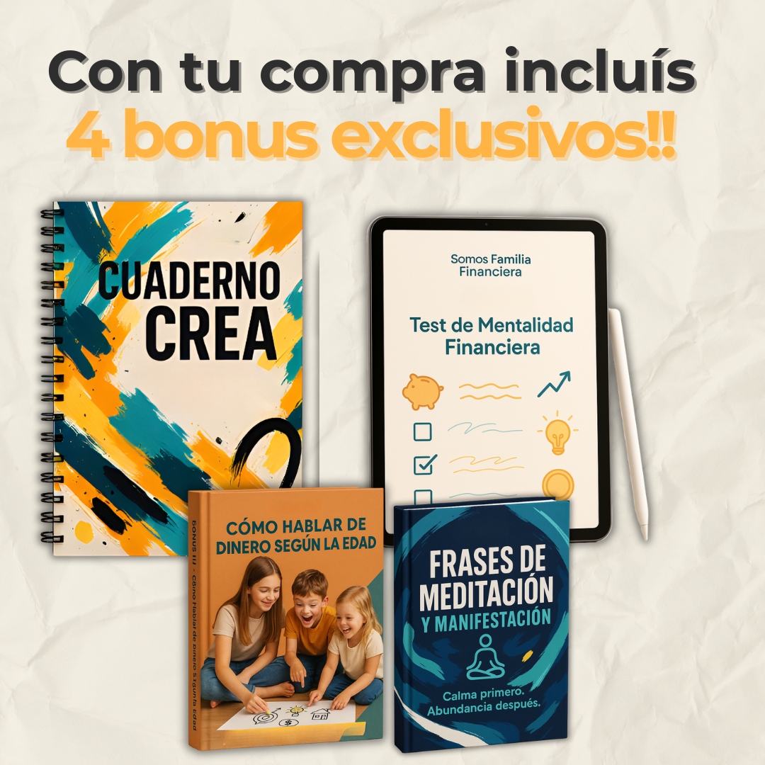 ♥ En solo 4 semanas vas a notar decisiones más conscientes y una relación más sana con el dinero en vos y en tus hijos.